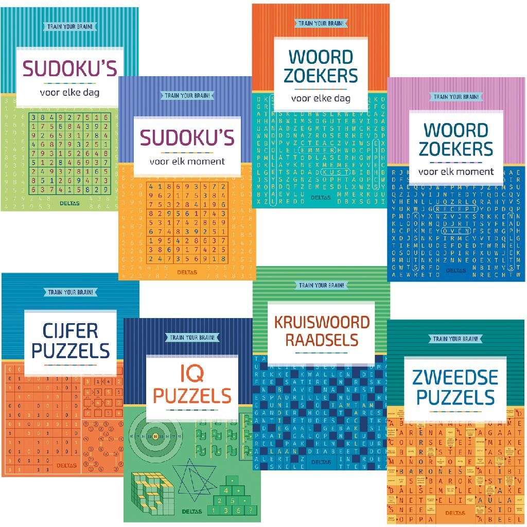 De inhoud bestaat uit 4 stuks van de Train Your Brain puzzelboeken Sudoku's, Woordzoekers, Cijferpuzzels, IQ puzzels, Kruiswoordraadsels en Zweedse puzzles. Kom je er niet uit? Achter in de boeken vind je de oplossingen. Of je nu een beginner bent of een echte puzzel-expert, met deze puzzelboeken heb je beslist eindeloos veel puzzelplezier! Het papier is FSC-gecertificeerd. Geschikt voor kinderen vanaf 12 jaar. 32-delig.