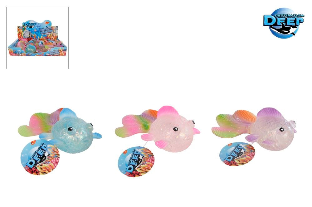 Speelgoed goudvis met verschillende kleuren en glitters. Afmeting 6 cm. Geschikt vanaf 3 jaar.