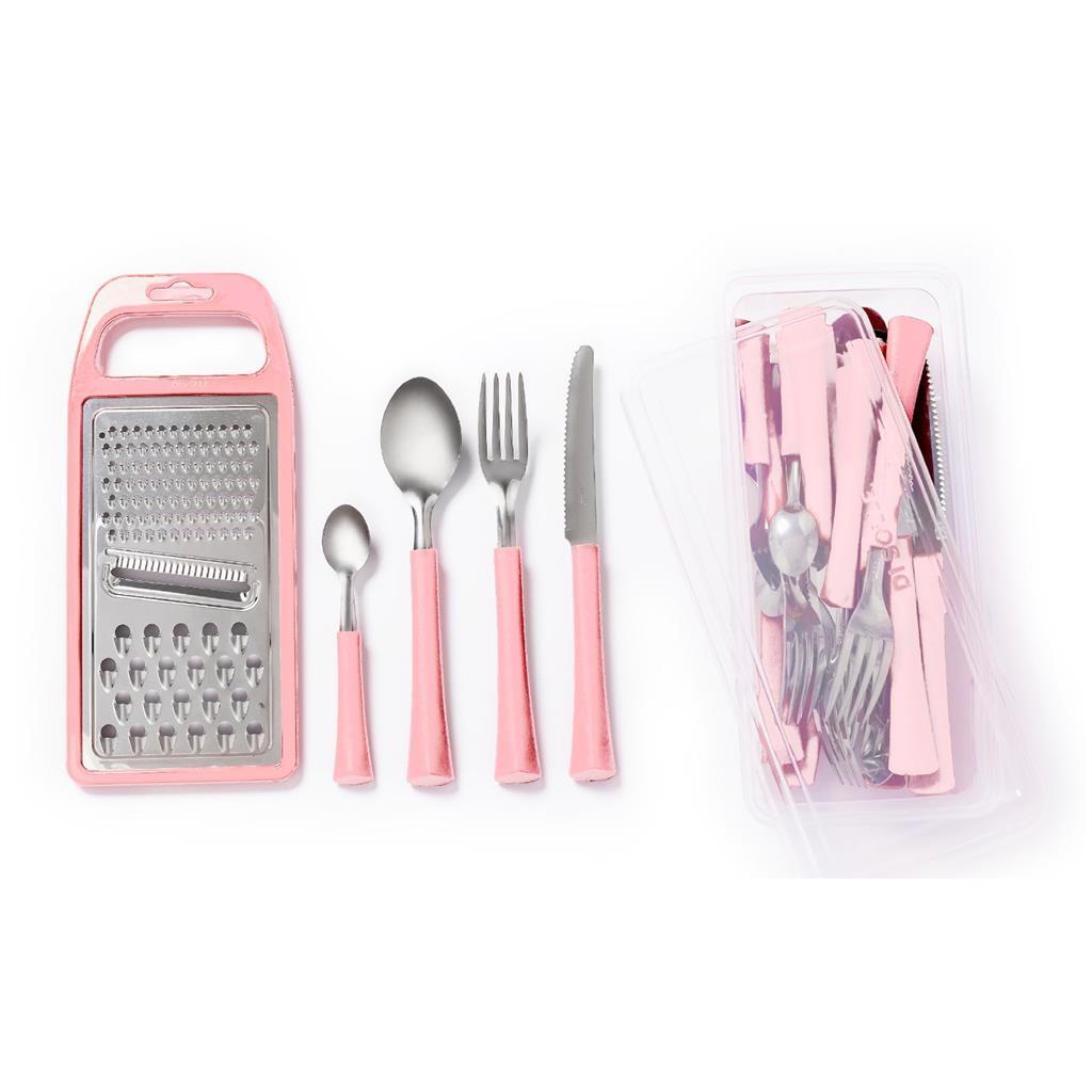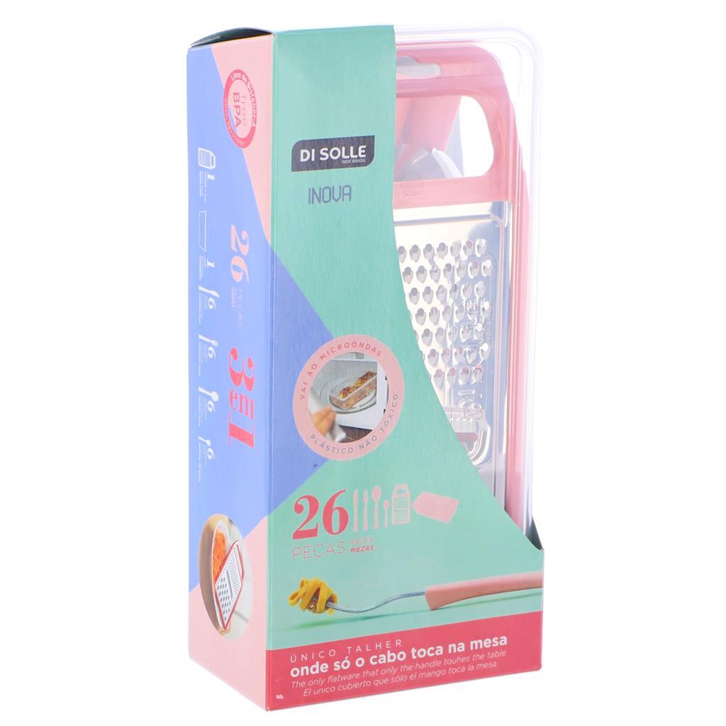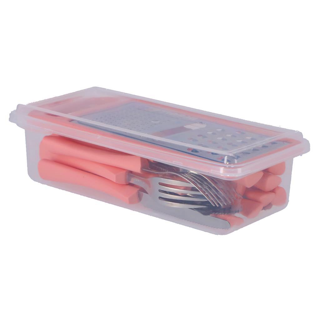 Met dit 26-delige bestekset Inova in de kleur lichtroze heb je alles bij de hand! Het complete bestekset zit in een handig doosje waar bovenop een rasp en schaaf ligt. In het bakje kun je je lunch of kliekjes in opwarmen. Na gebruik kan de hele set in de vaatwasmachine.