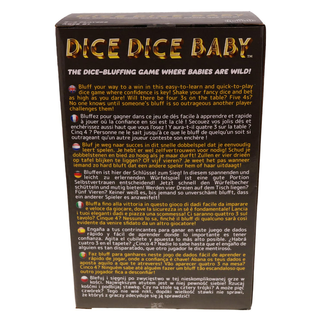 Bluf je weg naar succes in dit dobbelspel waarbij baby's als joker dienen! Ben jij de laatste speler die minimaal één dobbelsteen over heeft, dan win jij het spel!