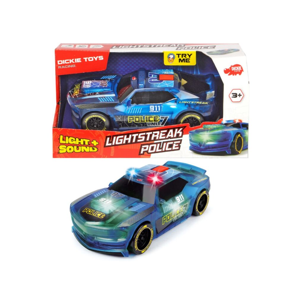 Met deze supersnelle politieauto hou jij je stad veilig. Laat hem over de weg racen met licht en geluid zodat iedereen weet dat je eraan komt! Oh, een oproep. De bank is net beroofd en de boef probeert de stad uit te vluchten! Ga er snel achteraan. Voor je het weet heb je de boef te pakken en hem in de boeien geslagen. Geschikt voor agenten vanaf3 jaar.