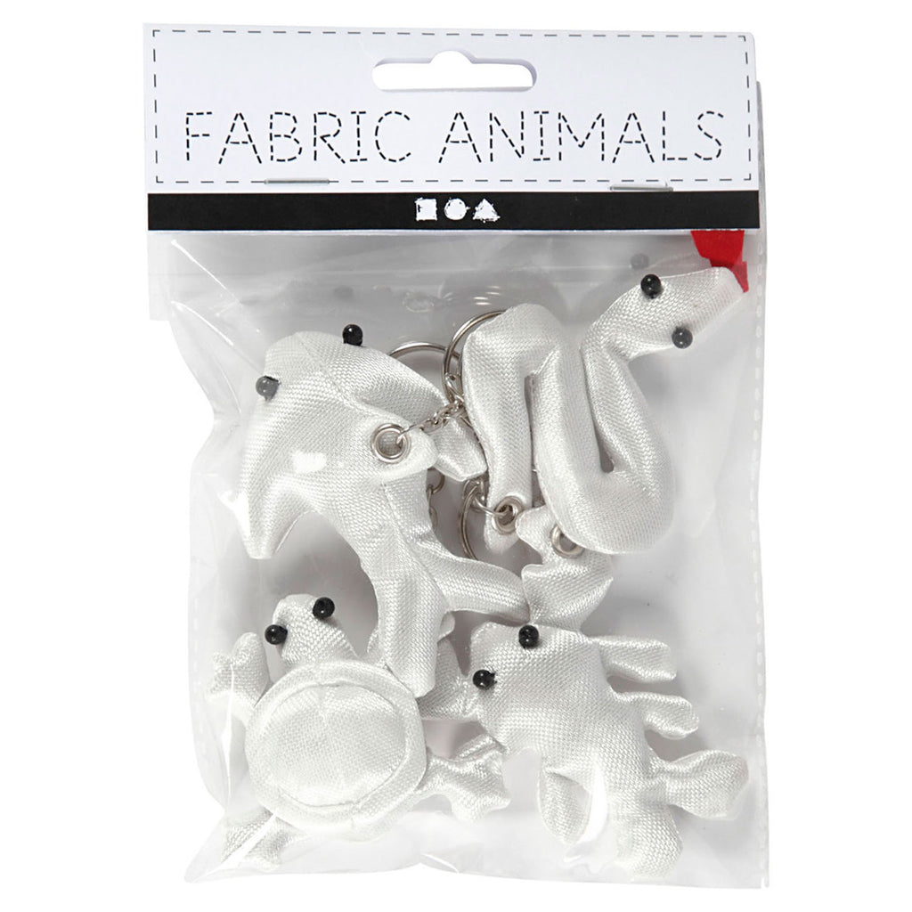 In dit setje zitten vier verschillende dieren sleutelhangers van textiel. Decoreer de diertjes naar eigen wens met textielstiften (niet meegeleverd). Klaar met versieren? Hang de sleutelhanger aan je sleutelbos, zodat je jouw sleutelbos eenvoudig kunt herkennen. Ook leuk als cadeautje! De figuren zijn 4 tot 8 centimeter.