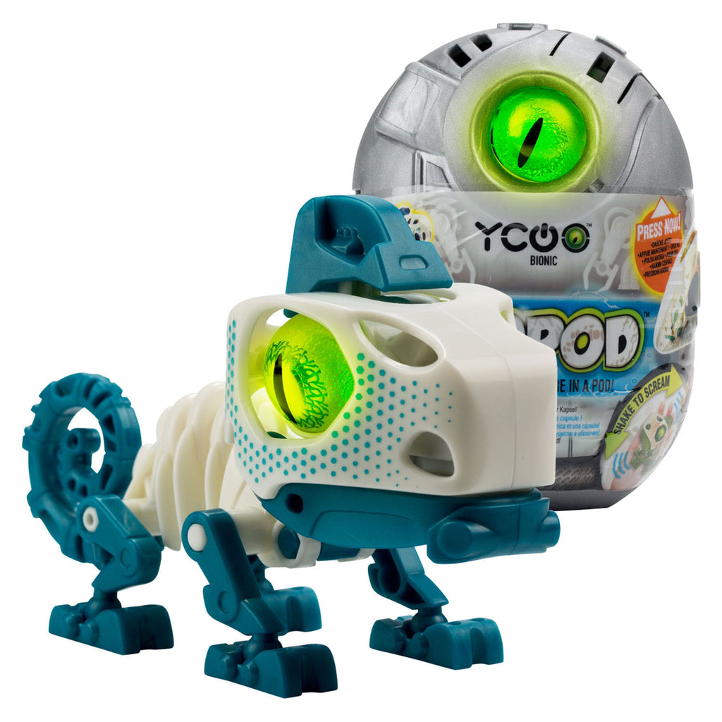 De Biopod Dino’s wachten maar op 1 ding en dat is vrijgelaten worden uit hun capsule! Ze hebben unieke, oplichtende ogen, die al zichtbaar zijn in de capsule. In iedere Biopod vind je een dino die je zelf in elkaar moet zetten met meer dan 15 onderdelen. En eenmaal in elkaar, komen ze met een druk op de knop tot leven! Ze openen hun bek en maken geluid, terwijl hun spectaculaire ogen groen oplichten! Schud ze voor nog meer geluidseffecten. Er zijn 8 verschillende Dino robots te verzamelen, dus spaar alle Biopods! Afmeting Biopod capsule: 9 x 7 cm. De Dino’s zijn ca. 13 cm groot. Interactief en creatief speelgoed voor kinderen vanaf 5 jaar. Batterij informatie: 2 x AG13/LR44 batterijen (meegeleverd).