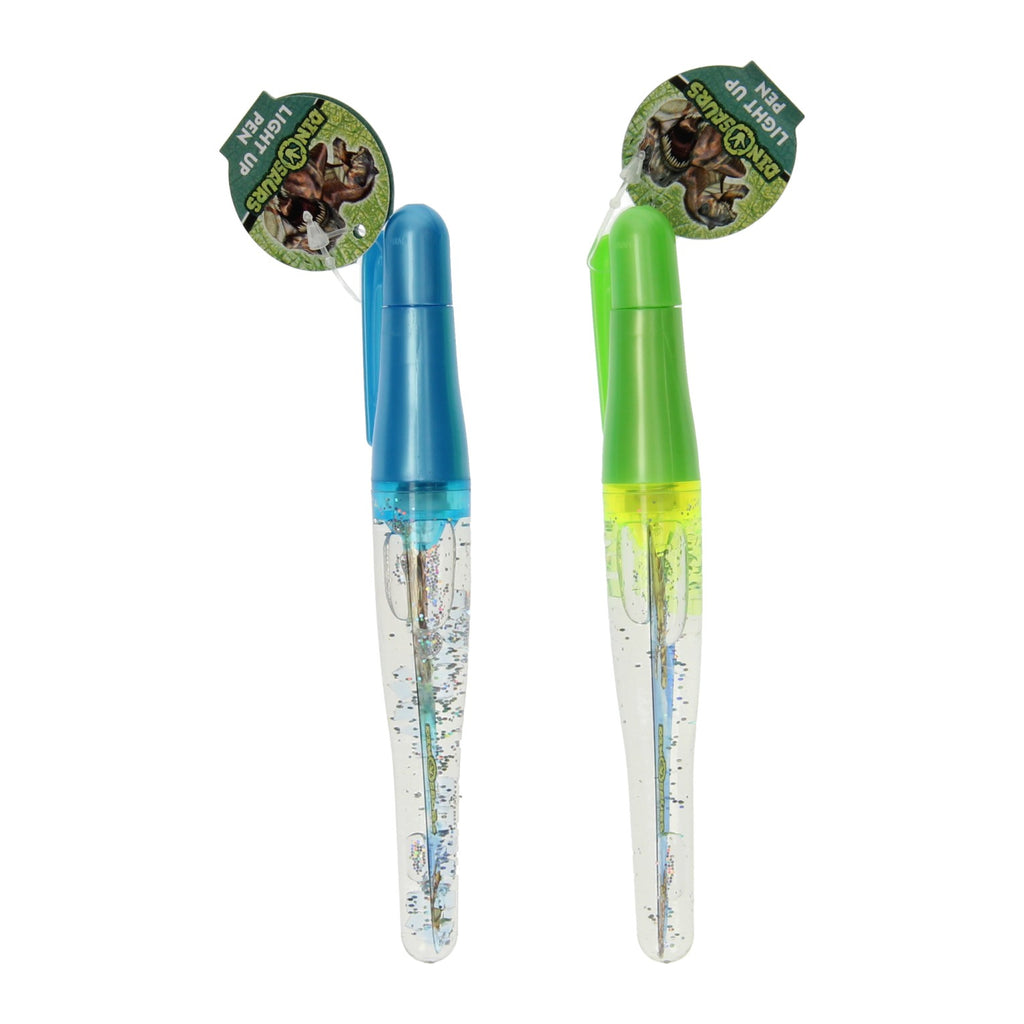 Coole lichtgevende pen met dinosaurusprint en glitter. Adviesleeftijd: vanaf 3 jaar.