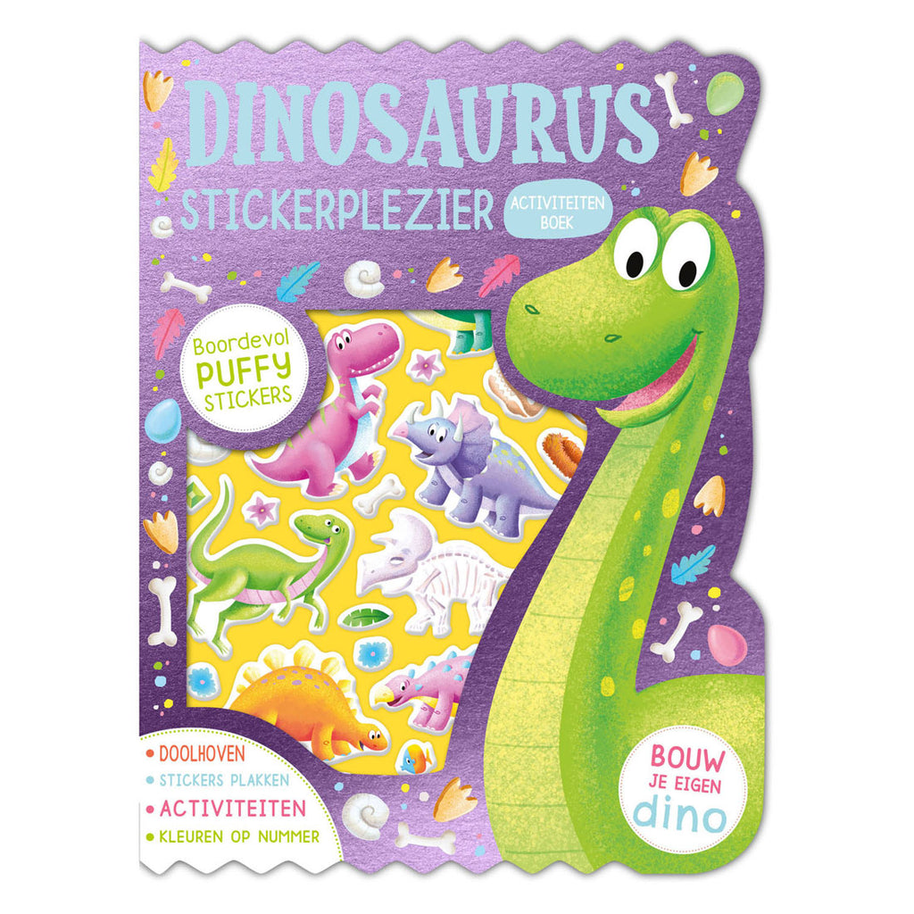 Maak plezier met dino's in dit activiteitenboek vol doolhoven, stickers, spelletjes en kleurplaten.