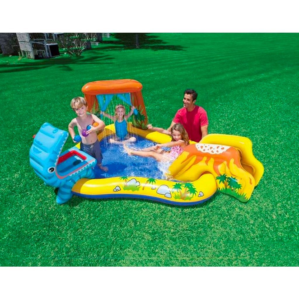 Dit multifunctionele zwembad in Dinosaurus stijl is gegarandeerd een geweldige aankoop voor uw kinderen. Het zwemcentrum is zeer geschikt voor jonge kinderen en beschikt over een glijbaan, een hongerige dino en een palmboom waterval. Uw kind zal een zomer lang speelplezier en waterpret beleven in dit spectaculaire zwembad speelcentrum.