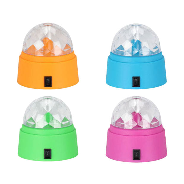 Discolamp met 6 ledlampjes. Werkt op 3 AA batterijen (niet inbegrepen).
