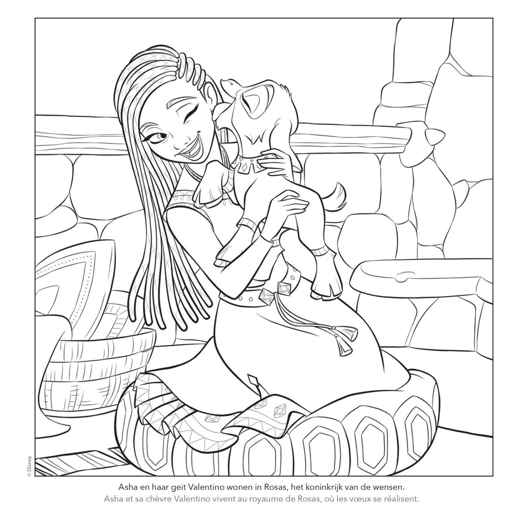 In dit prachtige kleurboek herbeleef je de mooiste momenten uit de magische Disneyfilm 'Wish'. Pak je kleurpotloden of stiften en geef Asha, Valentino en de andere figuren een mooi kleurtje. Gebruik de kleurvoorbeelden om je tekening in te kleuren of laat je fantasie de vrije loop. Kleurpret verzekerd!