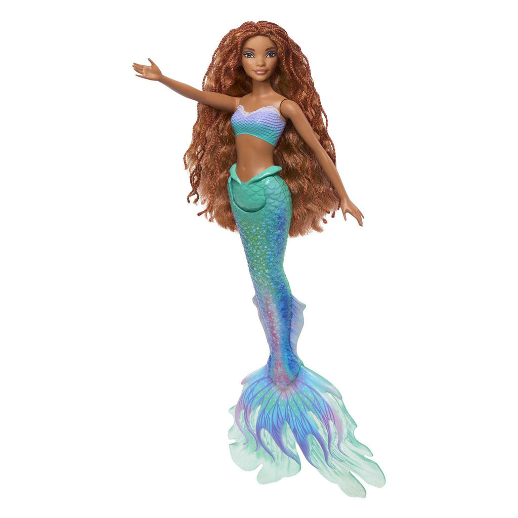 Maak kennis met de poppen uit de nieuwste Disney bioscoopfilm: De Kleine Zeemeermin! De verstelbare Ariël-zeemeerminpop wordt getoond met haar kenmerkende zeemeerminstaart en heeft lang haar voor eindeloos stylingplezier. Fans spelen graag hun favoriete momenten uit de film na of verzinnen zelf nieuwe onderwateravonturen met Ariël. Pop kan niet los staan. Kleuren en versieringen kunnen variëren.