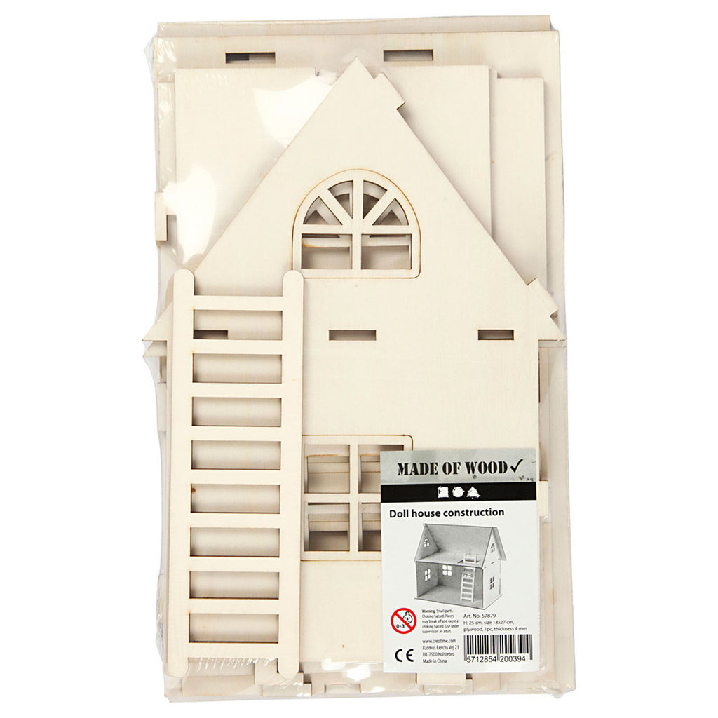 Dit poppenhuis kun je zelf in elkaar zetten! Het poppenhuis is gemaakt van lichtbruin hout en heeft meerdere ramen en een deur. Het poppenhuis is aan één kant open, zodat het huis ook echt gebruikt kan worden. Nadat het poppenhuis in elkaar gezet is kun je het nog naar eigen wens versieren! Exclusief accessoires.