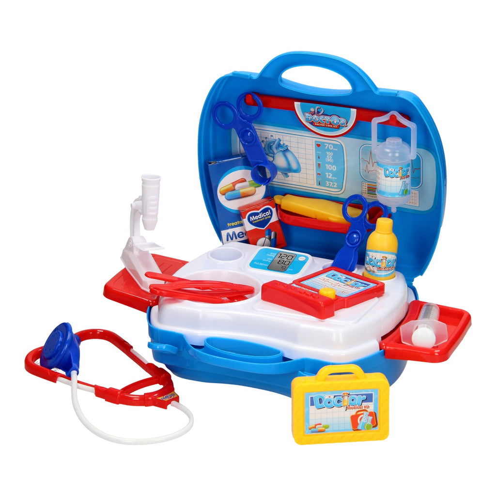 Een echte dokter heeft natuurlijk altijd een dokterskoffer bij zich. Met deze Dokter Speelset help jij jouw patiënten weer beter te maken. In de koffer vind je onder ander een stethoscoop, een spuitje, een pincet, medicijnen en nog zoveel meer. Ook kun je de koffer ombouwen tot een heus röntgen/diagram apparaat. De set is gemaakt van stevig kunststof in vrolijke kleuren. De inhoud van de set kan iets afwijken van de getoonde afbeeldingen. Geschikt voor kinderen vanaf 3 jaar.