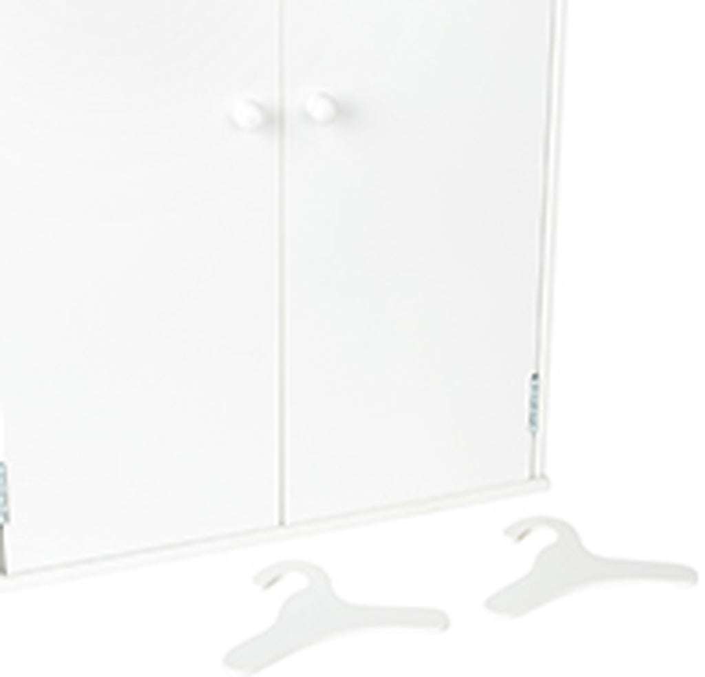 Organisatie is het halve werk! Deze poppenkast in een eenvoudig ontwerp maakt indruk op klanten met zijn comfortabele configuratie. Zo kunnen jonge kinderen spelenderwijs alles op orde houden en kunnen de poppenkleertjes aan de geïntegreerde kleerhangers worden gehangen of op de planken worden gelegd. De uittrekbare lade biedt ook ruimte voor geselecteerde poppenspullen. Zo kunnen al hun favoriete outfits bij de hand blijven en kan het plezier beginnen. Deze poppenkast is een praktische aanvulling op je poppenmeubelset. Inclusief twee kleerhangers.