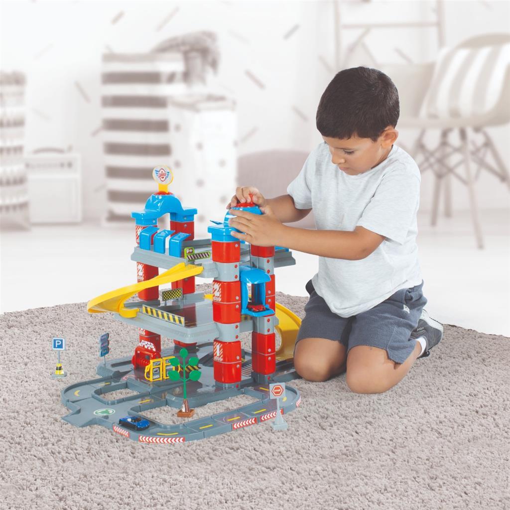 Deze Dolu Garage 3 Etages biedt vele speelmogelijkheden. De kleurrijke garage beschikt over een lift, helling, wasstraat en tankstation. Wordt geleverd inclusief 2 auto?s en leuke accessoires. Geschikt voor kinderen vanaf 3 jaar.