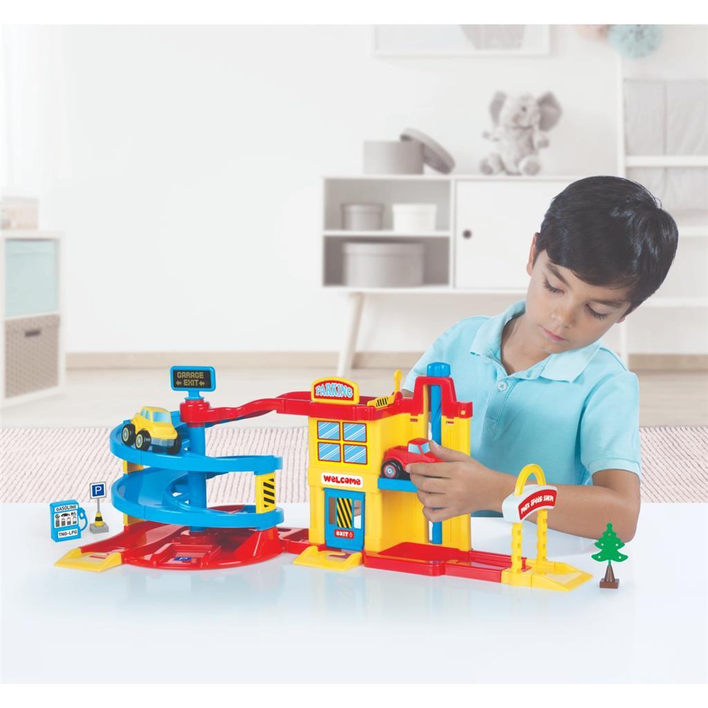 De Dolu garage speelset staat garant voor urenlang speelplezier. De kleurrijke garage beschikt over een lift en een helling. Er zit een auto en een pick-up truck bij. Inclusief tankstation en andere leuke accessoires. Geschikt voor kinderen vanaf 1,5 jaar.