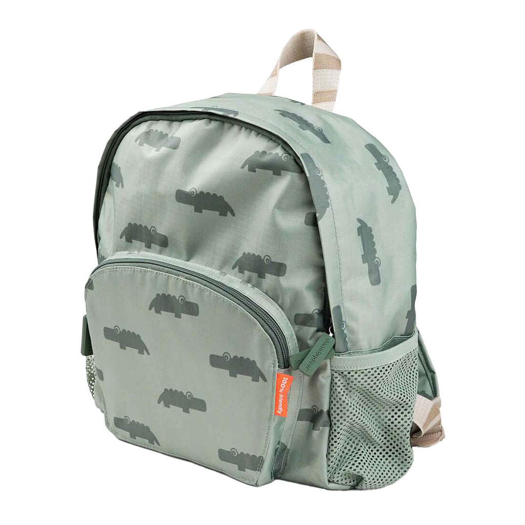 De groene kinderrugzak is versierd met de vrolijke krokodil Croco. Hij is gemaakt van 100% polyester dat duurzaam en weerbestendig is. Aan de binnenkant zit een leuk naamplaatje.