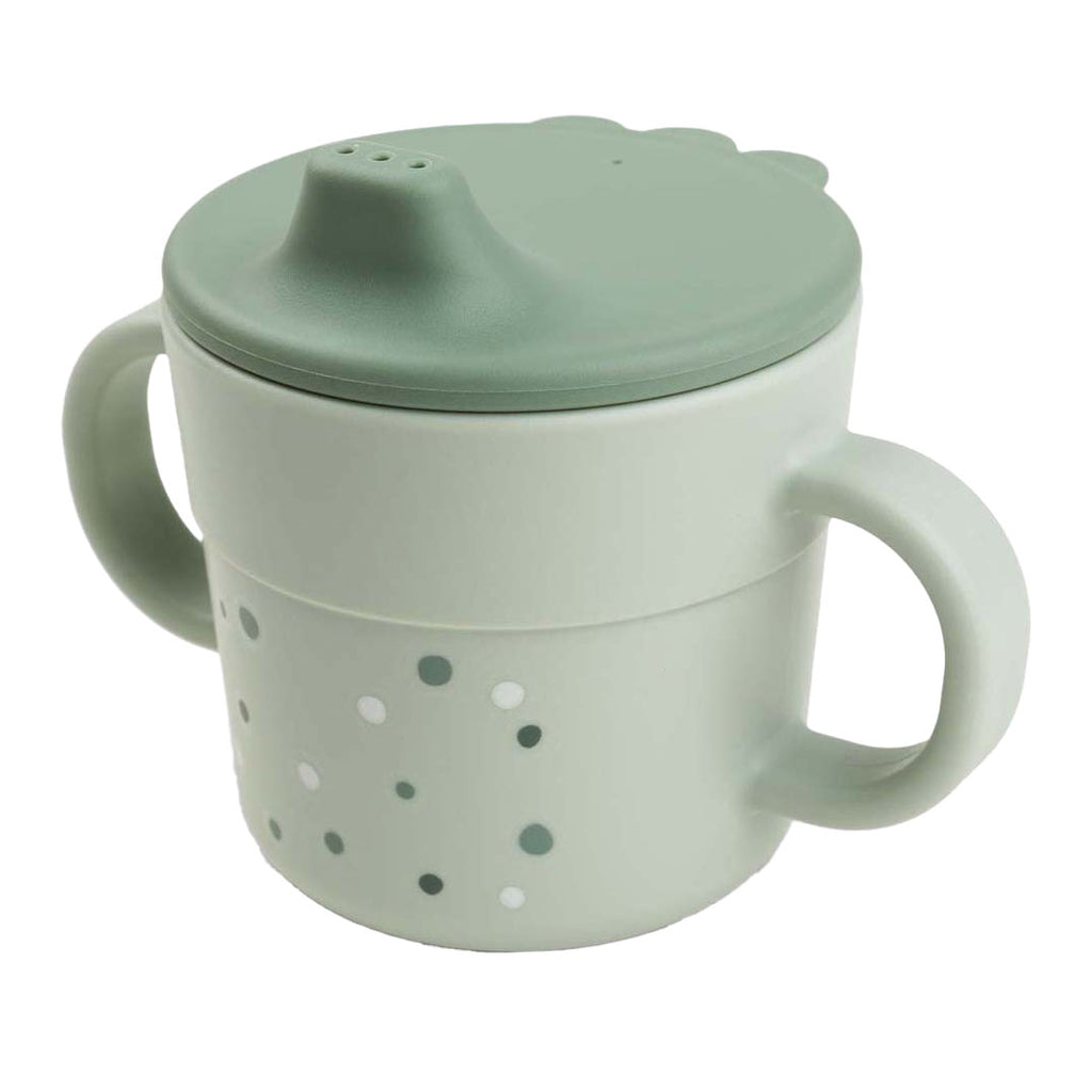 De coole groene tuitbeker met speelse Happy dots fleurt elke maaltijd op. Het zijdezachte matte oppervlak past bij de rest van de Foodie-collectie. Het donkerdere groen van het deksel voegt een leuk tweekleurig detail toe.