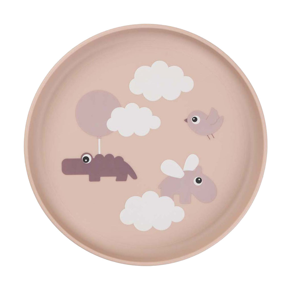 Het poederkleurige bord is bedrukt met een speels Happy clouds-motief. Croco, Ozzo en Birdee verkennen de wereld tussen de wolken en nodigen je kind uit om nieuwe smaken en texturen te ontdekken. Het donkere poeder van de basis voegt een leuk tweekleurig detail toe.