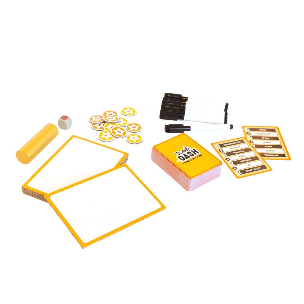 De tekenwedstrijd waarbij snelheid het kan halen van talent, zo kan iedereen eens winnen! Win door de snelste tekenaar te zijn... van wie de actieve speler de tekening weet te raden! In Doodle Dash kan een simpele tekening al volstaan. Neem je het risico door snel te schetsen? Of durf je toch wat meer details toe te voegen? Voor 3 tot 7 spelers vanaf 10 jaar.