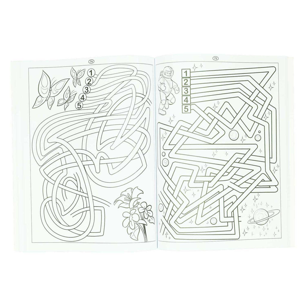 Vind je weg door de wirwar van paden in 115 leuke doolhoven! Puzzelboekje voor kinderen vanaf 4 jaar.
