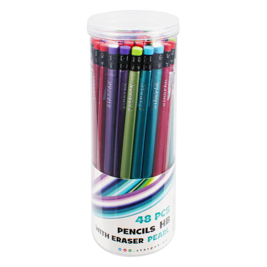 Driehoekige potloden met gum set van 48 stuks.