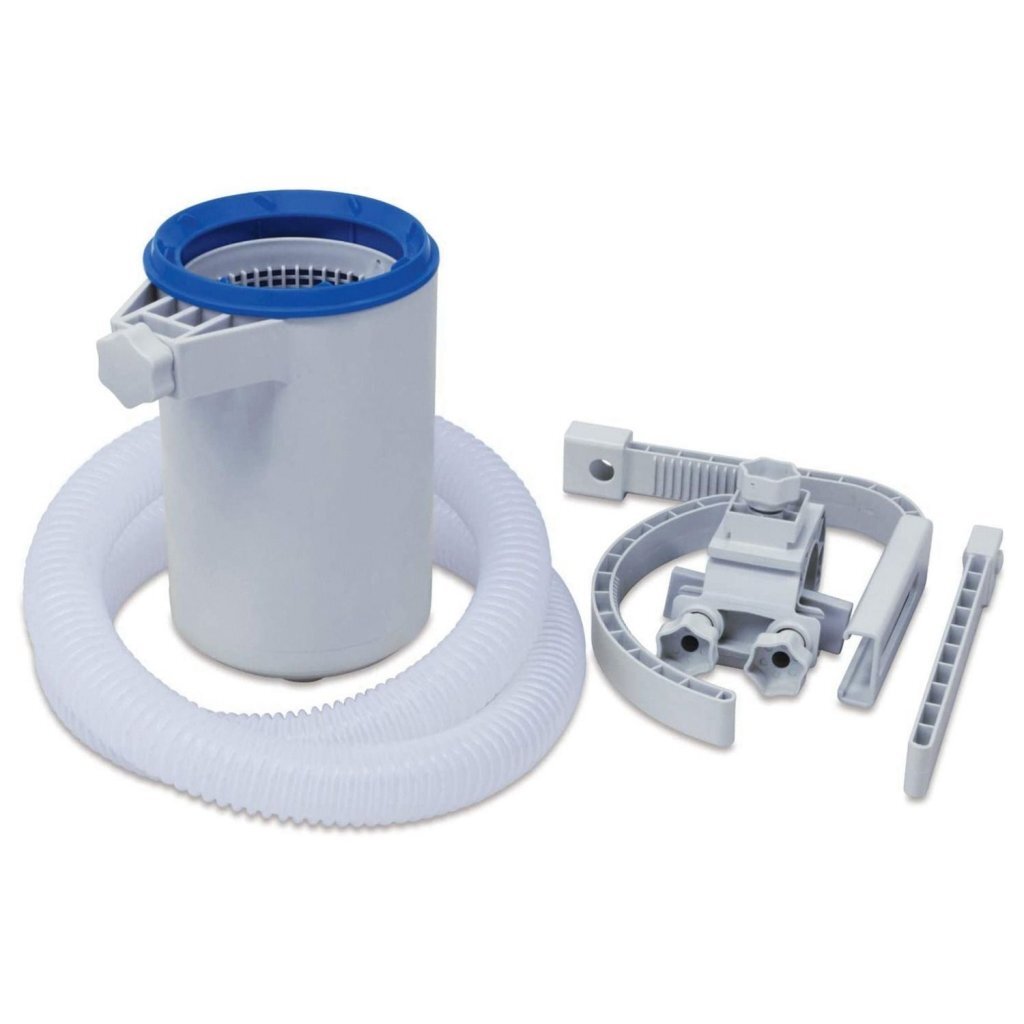 - Voorzien van een skimmermandje, die eenvoudig geleegd kan worden wanneer er te veel vuil in zit