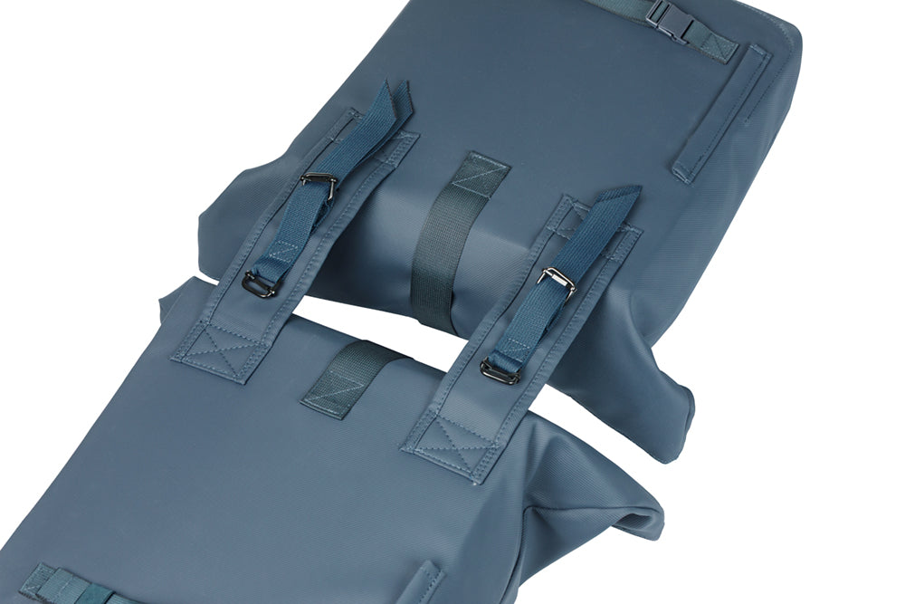 Van huis naar werk, in stijl De Basil Brooklyn dubbele fietstas is gemaakt voor forenzen en stadsfietsers die dagelijks onderweg zijn en daarbij veel willen meenemen, zonder in te leveren op stijl. Van een laptop en documenten tot boodschappen of sportkleding, deze dubbele tas biedt ruimte en overzicht. De navy-uitvoering oogt strak en professioneel en past bij elke moderne fiets. Design & stijl De tas heeft een cleane, ingetogen look met strakke lijnen en een stevige afwerking. Deze dubbele fietstas voelt zich net zo thuis in de stad als onderweg naar kantoor. Het ontwerp is modern en minimalistisch, met een zakelijke maar toegankelijke uitstraling. Gebruiksgemak & functionaliteit Met 41 liter inhoud is er ruimte genoeg voor al je dagelijkse benodigdheden. De tas is waterdicht en voorzien van een waterafstotende vouwsluiting met gesp. Voor kleinere items zijn er handige buitenvakken. Slim geplaatste klittenbandsluitingen zorgen voor stabiliteit op de fiets. De tas is daarnaast compatibel met de Basil Distance Holder voor extra veiligheid. Techniek & bevestiging De dubbele fietstas is voorzien van het Basil Universal Bridge System waardoor die op alle bagagedragers past (ook e-bikes) en gecombineerd kan worden met bevestigingssystemen als Racktime en i-Rack/Carrymore. Duurzaamheid & materiaalkeuze De Basil Brooklyn is gemaakt van gerecycled PET, volledig PFAS-vrij en waterdicht (IPX3). Dankzij de handige repairzipper is de tas eenvoudig te repareren, zodat je er nóg langer plezier van hebt. Kenmerken Inhoud: 41 liter Gemaakt van gerecycled PET (IPX3-waterdicht) PFAS-vrij materiaal Dubbele tas met cleane, moderne uitstraling Waterafstotende vouwsluiting met gesp Voorzien van buitenvakken voor kleine spullen Bevestiging met Basil Universal Bridge System (geschikt voor o.a. Racktime en i-Rack/Carrymore) Compatibel met e-bikes Geschikt voor gebruik met Basil Distance Holder (apart verkrijgbaar) Voorzien van repairzipper (voor eenvoudig herstel) Afmetingen: 14 x 30 x 37 cm (D x B x H) Kleur: navy Ideaal voor woon-werkverkeer, boodschappen en dagelijks gebruik