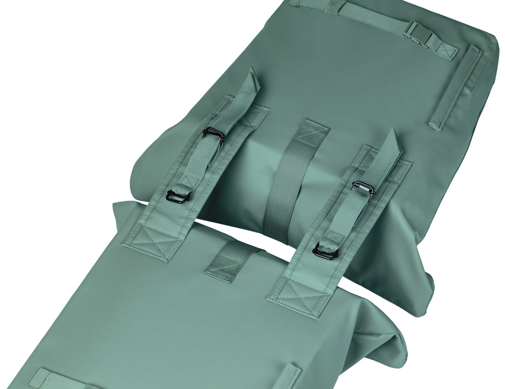 Van huis naar werk, in stijl De Basil Brooklyn dubbele fietstas is gemaakt voor forenzen en stadsfietsers die dagelijks onderweg zijn en daarbij veel willen meenemen, zonder in te leveren op stijl. Van een laptop en documenten tot boodschappen of sportkleding, deze dubbele tas biedt ruimte en overzicht. De vergrijsde groentint geeft een frisse twist aan je ritten zonder in te boeten op professionaliteit. Design & stijl De tas heeft een cleane, ingetogen look met strakke lijnen en een stevige afwerking. Deze dubbele fietstas voelt zich net zo thuis in de stad als onderweg naar kantoor. Het ontwerp is modern en minimalistisch, met een zakelijke maar toegankelijke uitstraling. Gebruiksgemak & functionaliteit Met 41 liter inhoud is er ruimte genoeg voor al je dagelijkse benodigdheden. De tas is waterdicht en voorzien van een waterafstotende vouwsluiting met gesp. Voor kleinere items zijn er handige buitenvakken. Slim geplaatste klittenbandsluitingen zorgen voor stabiliteit op de fiets. De tas is daarnaast compatibel met de Basil Distance Holder voor extra veiligheid. Techniek & bevestiging De dubbele fietstas is voorzien van het Basil Universal Bridge System waardoor die op alle bagagedragers past (ook e-bikes) en gecombineerd kan worden met bevestigingssystemen als Racktime en i-Rack/Carrymore. Duurzaamheid & materiaalkeuze De Basil Brooklyn is gemaakt van gerecycled PET, volledig PFAS-vrij en waterdicht (IPX3). Dankzij de handige repairzipper is de tas eenvoudig te repareren, zodat je er nóg langer plezier van hebt. Kenmerken Inhoud: 41 liter Gemaakt van gerecycled PET (IPX3-waterdicht) PFAS-vrij materiaal Dubbele tas met cleane, moderne uitstraling Waterafstotende vouwsluiting met gesp Voorzien van buitenvakken voor kleine spullen Bevestiging met Basil Universal Bridge System (geschikt voor o.a. Racktime en i-Rack/Carrymore) Compatibel met e-bikes Geschikt voor gebruik met Basil Distance Holder (apart verkrijgbaar) Voorzien van repairzipper (voor eenvoudig herstel) Afmetingen: 14 x 30 x 37 cm (D x B x H) Kleur: vergrijsd groen Ideaal voor woon-werkverkeer, boodschappen en dagelijks gebruik