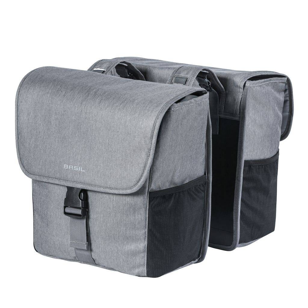 De Basil GO Double Bag is een dubbele fietstas in het grijs voor achterop de fiets. Deze tassen zijn perfect voor het vervoeren van je boodschappen of voor een heerlijk dagje fietsen. De tas heeft een ruim hoofdcompartiment dat je kunt afsluiten met een aansnoerkoord. Bovendien zit er op elke zijde een elastisch buitenvak. Handig wanneer je een flesje drinken of een paraplu wilt meenemen. De totale inhoud van de tas is 32 liter. Groot genoeg voor je boodschappen. De dubbele fietstas is gemaakt van hoogwaardig waterafstotend polyester. Dankzij het Universal Bridge systeem bevestig je de tas eenvoudig op je bagagedrager. Ook op de bagagedrager van je elektrische fiets. Het Universal Bridge systeem bestaat uit acht gleuven. Deze gleuven maken het mogelijk om de tas op drie manieren te bevestigen: Vaste montage: met behulp van de meegeleverde riempjes. Afneembaar: in combinatie met een adapterplaat. Geschikt voor adapterplaten van MIK, Racktime, i-Rack/Carrymore. Deze adapterplaten dien je apart aan te schaffen. Afneembaar: in combinatie met het DBS- detachable bag systeem. De GO serie is verkrijgbaar in de kleuren zwart en chique grijs mêlee. Maak je fietslook compleet met een bijpassend zadeldekje. Product Specificaties: De dubbele fietstas is uitgevoerd in een chique grijs mêlee kleur. Voorzien van handige zijvakken waar je een flesje drinken of een paraplu in mee kunt nemen. Reflectie op alle zijden. Dankzij het Universal Bridge systeem op diverse manieren en bagagedragers te bevestigen. Model: Achtertas Materiaal: Polyester Kleur: Blauw Afmetingen: 33 cm x 16 cm x 38 cm (Buitenwerkse maten)