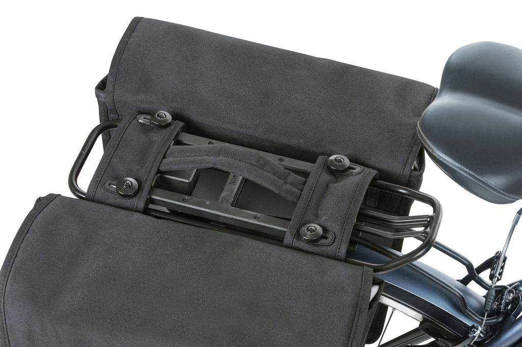 De Basil GO Double Bag MIK is een veelzijdige fietstas met een inhoud van 32 liter. De zwarte tas heeft een voorgemonteerde MIK adapterplaat. De Basil GO Double Bag MIK is een dubbele fietstas voor achterop een dames-of herenfiets. Dankzij het MIK systeem is de tas ook uitermate geschikt voor E-bikes! De dubbele fietstas is namelijk voorzien van een voorgemonteerde adapterplaat (70171). Daarmee is de tas geschikt voor een bevestiging op een MIK systeemdrager of MIK Carrierplaat (apart verkrijgbaar). Bevestigen gaat snel een eenvoudig! Je klikt de tas met behulp van de adapterplaat op een MIK systeemdrager of als je deze niet hebt op een MIK Carrierplaat (apart verkrijgbaar). De tas is voorzien van twee elastische buitenvakken. Handig om een flesje drinken of een paraplu in mee te nemen. Het hoofdcompartiment sluit je af door middel van een aansnoerkoord en een kliksluiting. Daarnaast is de tas vervaardigd uit hoogwaardig waterafstotend polyester en wordt geleverd in een zwarte kleur. De tas is verder voorzien van reflectie op alle zijden. Maak je fietslook compleet met een bijpassend zadeldekje. Eigenschappen: De dubbele fietstas is uitgevoerd in een chique grijs mêlee kleur. Voorzien van handige zijvakken waar je een flesje drinken of een paraplu in mee kunt nemen. Reflectie op alle zijden. Inclusief voorgemonteerde MIK adapterplaat. Geschikt voor MIK bagagedragers of een MIK carrierplaat (apart verkrijgbaar). Uitgebreide specificaties Model: Achtertas Dubbel of enkel: Dubbel Geschikt voor: Electrische fiets, stadsfiets, city-trekking fiets Activiteit: Woon/werk,Recreatief Materiaal: Polyester Kleur: Zwart Systeem: MIK Adapterplaat 70171 (inclusief) Ook te gebruiken als: Nvt Toepassing: Bagagedrager Extra vak voor: Laptop Sluiting hoofdvak: Kliksluiting Laptopvak: Nee Zijvak(ken): Ja Voorvak(ken): Nee Diefstalbeveiliging: Ja Waterbestendig: Spatwaterdicht Snelbinders mogelijk: Ja Afneembaar: Ja Handvat: Ja Draagcapaciteit: 10 kg totaal, met een maximum van 5 kg per tas Garantie: 2 jaar, via het verkooppunt waar u het product heeft gekocht