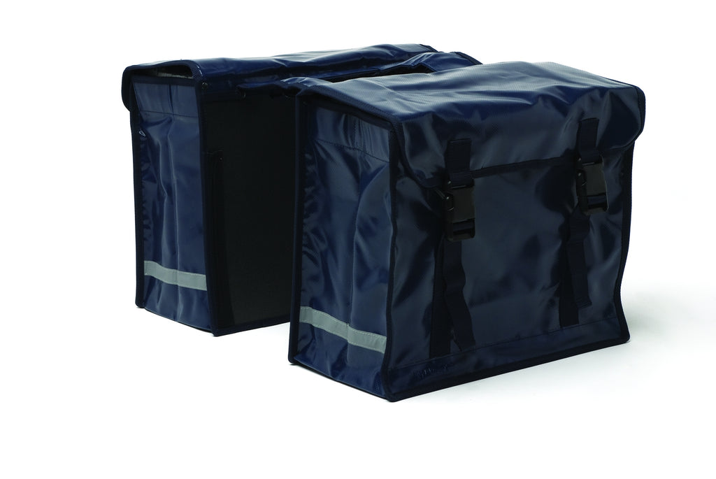 Dit zijn oersterke, extra grote dubbele boodschappentassen, ideaal als je veel ruimte nodig hebt om spullen mee te nemen op de fiets. Waterdicht bisonyl IJzersterk bisonylmateriaal Versterkte hoeken Reflectiestrepen Dubbele tas Productspecificaties: Materiaal: Bisonyl Groep: Fietstas Dubbele tas Plaats op fiets: Bagagedrager Waterbestendig: Spatwaterdicht Inhoud: 66 liter Gewicht: 2,25 kg Afmeting: 43cm x 22cm x 33cm (2x) Bevestiging: Riempjes Kleur: zwart