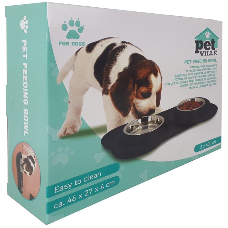 - dankzij de rubberen mat met openstaande rand, verschuiven de bakken niet en blijft geknoeid voedsel netjes op de mat liggen