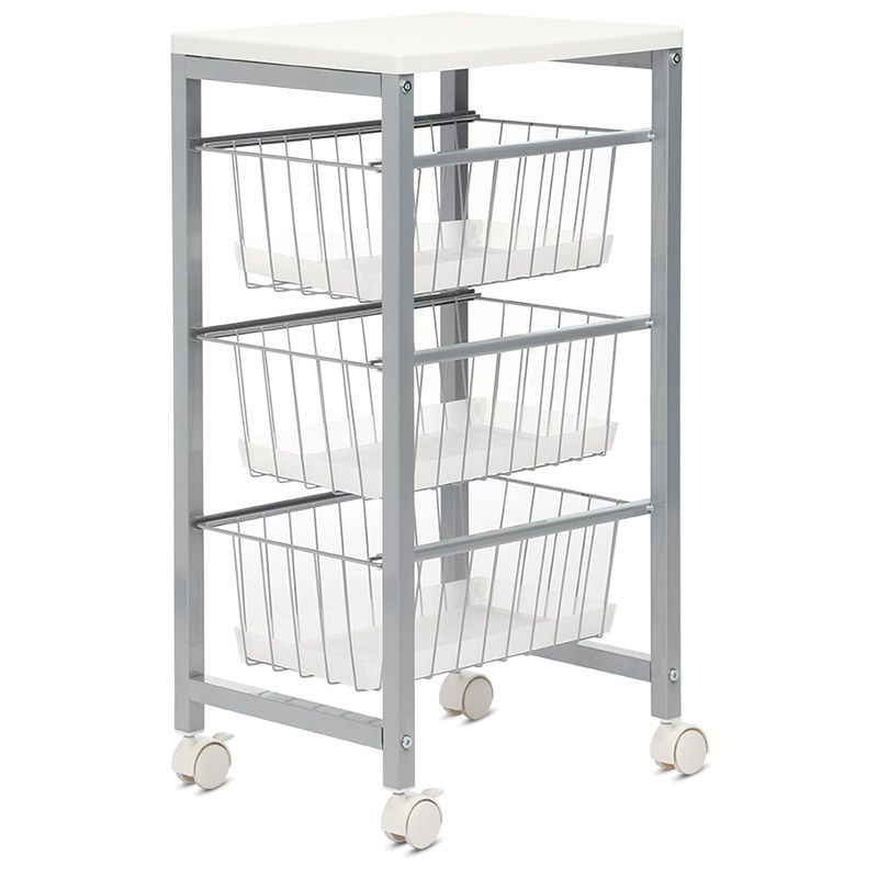 Wil je iets opbergen in je keuken, maar zitten de kastjes allemaal vol? Deze verrijdbare trolley is de oplossing. De 3 uitschuifbare metalen lades bieden ruimte voor het opbergen van diverse spullen, zoals handdoeken en theedoeken, kruidenpotjes of groente en fruit. Het houten werkblad biedt ruimte om de trolley als werkruimte te gebruiken, maar kan ook gebruikt worden als extra ruimte om spullen neer te zetten. De trolley staat erg stijlvol in de keuken, maar kan ook een praktische oplossing bieden in andere kamers, zoals de badkamer. Tevens is de trolley te gebruiken als serveerwagen.