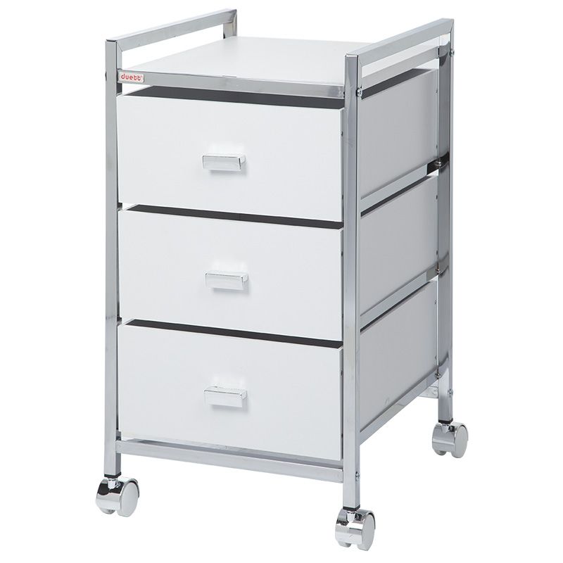 Wil je iets opbergen in je badkamer, maar zitten de kastjes allemaal vol? Deze verrijdbare trolley is de oplossing. De 3 uitschuifbare houten lades bieden ruimte voor het opbergen van diverse spullen, zoals handdoeken, shampoo en andere badkamerbenodigdheden. Het metalen werkblad van de trolley kan ook benut worden om spullen op te zetten. De trolley is erg praktisch in de badkamer, maar kan ook een oplossing bieden in andere kamers, zoals de keuken.