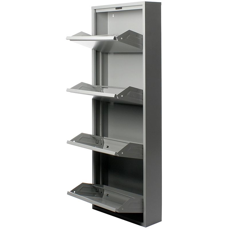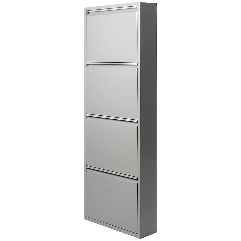 Met deze moderne, metalen schoenenkast van Duett houd jij je gang netjes en vrij van rondslingerende schoenen. Deze opbergkast heeft een mooie grijze kleur, waardoor hij bij veel diverse soorten inrichting past. Daarnaast is de kast smal, waardoor hij geen onnodige ruimte inneemt in jouw hal. De kast is voorzien van 4 vakken en is 136 cm hoog, hierdoor heb jij genoeg ruimte om je schoenen op te bergen. Heb jij opbergruimte aan de muur nodig? Geen probleem, deze schoenenkast is ook te monteren aan de wand.