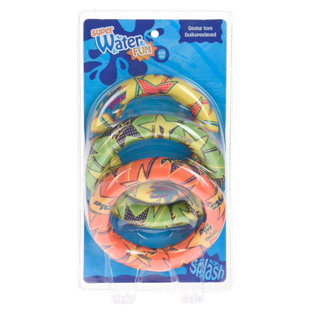 Duikringen Neon, 3st. De duikringen hebben een diameter van 13,5 centimeter.