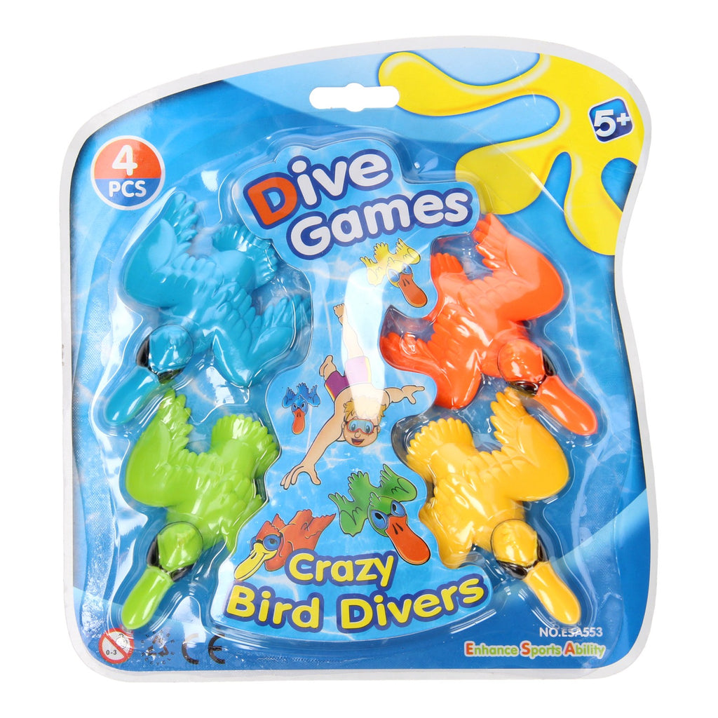 Ohjee, de maffe eendjes duiken naar beneden! Weet jij ze te redden? Deze duikset bevat 4 maffe eendjes van flexibel kunststof in felle kleuren.