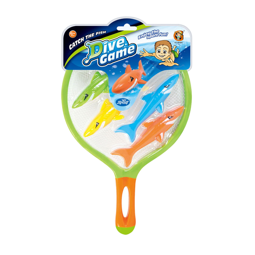 Duikset voor in bad of in het zwembad. Vang met het schepnetje de 4 haaitjes! Geschikt vanaf 6 jaar.