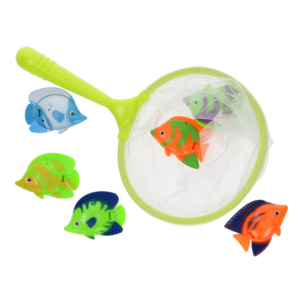 Gooi de vissen in het water en probeer ze te pakken met het bijgeleverde schepnetje. Perfect setje om je duikkunsten mee te oefenen.