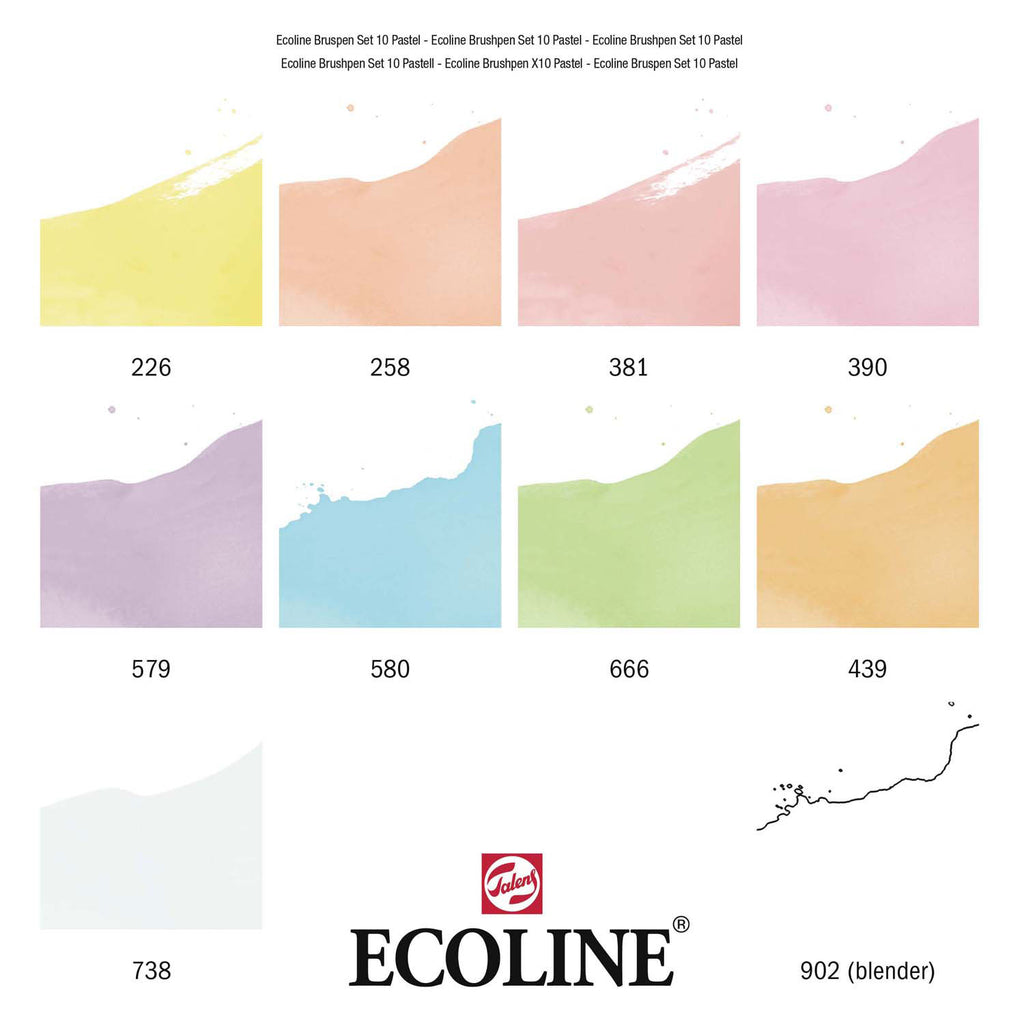 Deze set bevat 10 Ecoline Brush Pens in zachte pasteltinten. De Brush Pen kenmerkt zich door de flexibele punt en het uitgebreide assortiment schitterende kleuren dankzij de pure formule op kleurstofbasis. De transparante kleuren bieden de beste resultaten bij gebruik op wit of zeer lichtgekleurd papier. Indien gewenst kun je de kleurintensiteit gemakkelijk verminderen door ze te verdunnen met water of met de Brush Pen blender. Deze pennen zijn perfect voor handlettering, aquareltekeningen, snelle schetsen en finishing touches.