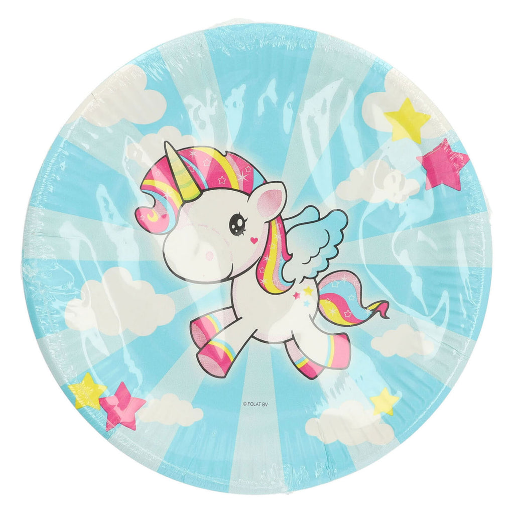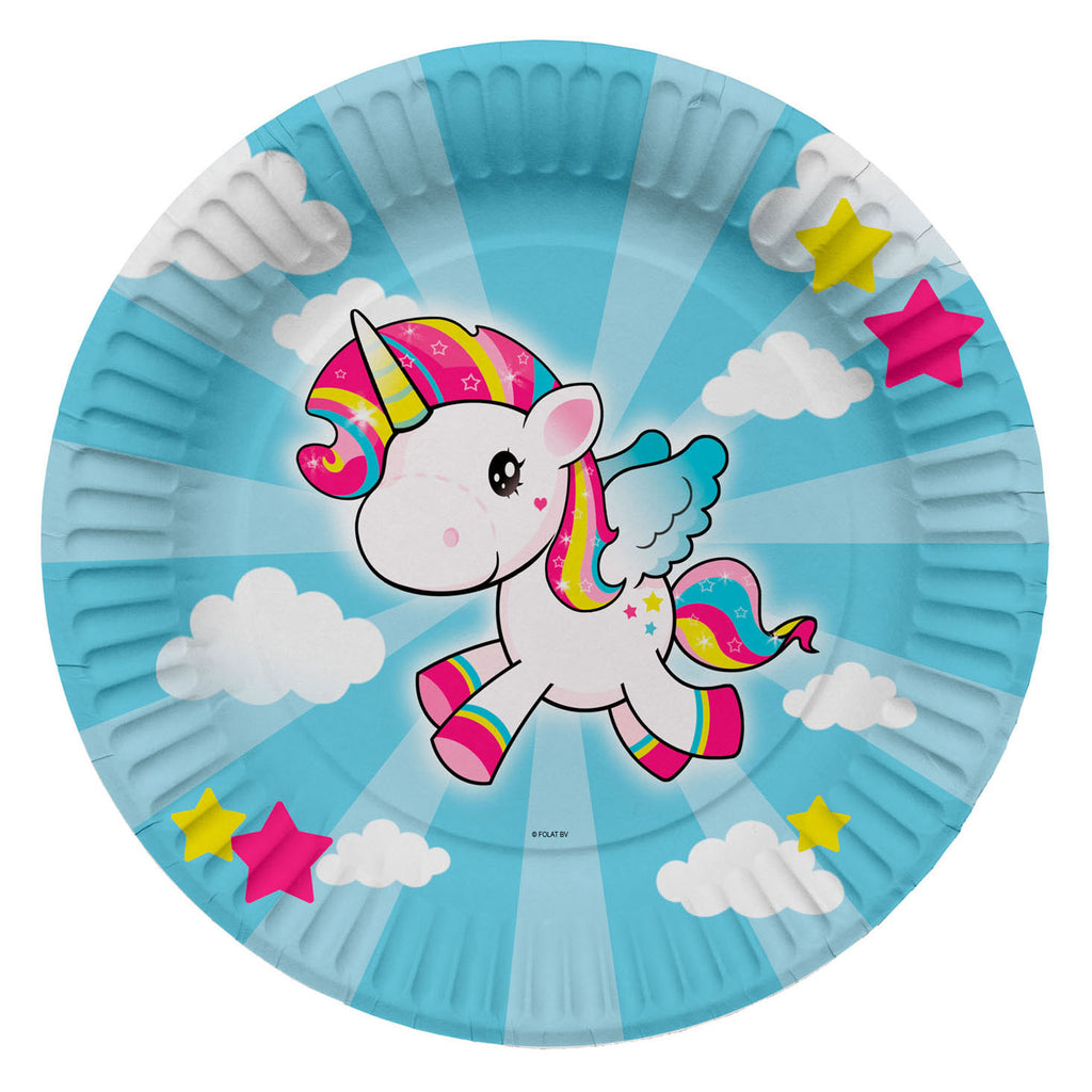 Borden Eenhoorn 23cm - 8 stuks. Inhoud: 8 borden. Kleur: Meerkleurig. Bijvoorbeeld te gebruiken tijdens de volgende feestgelegenheid/feestgelegenheden: Verjaardag en Kinderfeestje. Een bord heeft een diameter van 23 cm. Het artikel is gemaakt van FSC®-gecertificeerd papier.