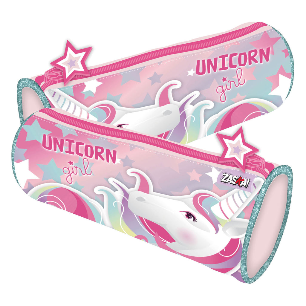 In dit romantische eenhoornetui bewaar al je al jouw pennen, potloden en andere schoolbenodigdheden! Dit roze/pastelkleurige etui heeft blauwe en roze details en een rits die je openmaakt met een siliconen ster. Van dit Unicorn-etui is ook een bijpassende gymtas, lunchtas en knikkerzak verkrijgbaar. Afmetingen 21 x 7 x 7 centimeter, gemaakt van polyester. Geschikt voor kinderen vanaf 3 jaar.