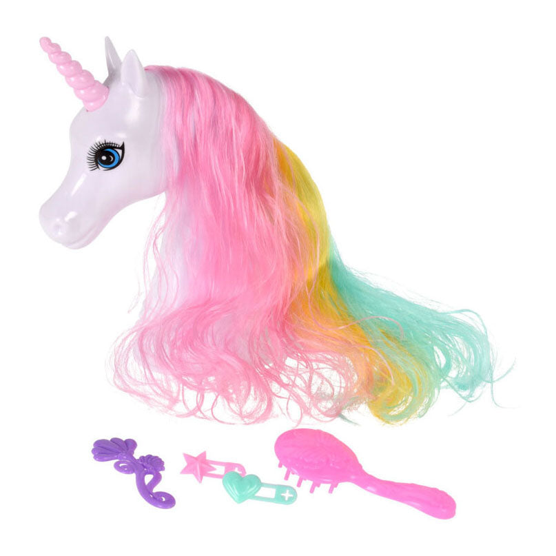 Kappop in eenhoornvorm. Inclusief 4 accessoires. Afmetingen: 20 x 16 x 6 centimeter.