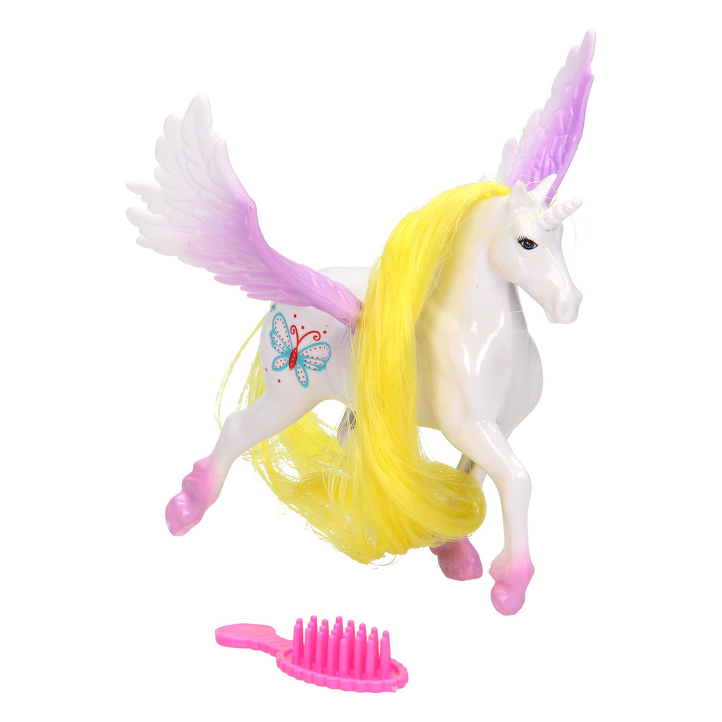 Ga op avontuur in de sprookjeswereld met deze schattige eenhoorn met lange manen. Gebruik de bijgeleverde kam om de manen mooi en glanzend te houden. Haar hoorn en grote vleugels maken de eenhoorn helemaal compleet.