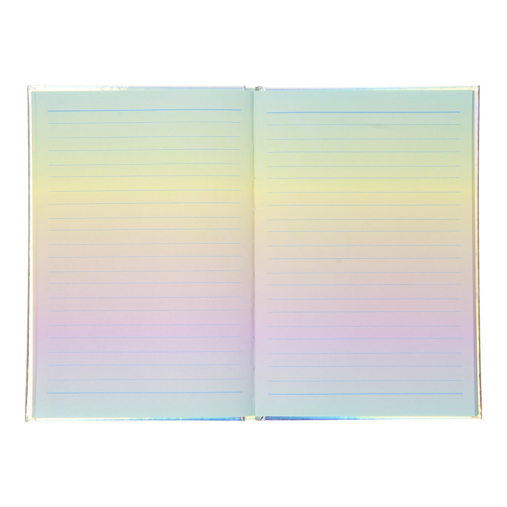Noteer jouw aantekeningen in dit holografische Eenhoorn Notitieboek in A5 formaat. Het notitieboek heeft gelinieerd regenboog papier en de omslag is voorzien van een afbeelding van een eenhoorn en de tekst 'Unicorn Dreams'.