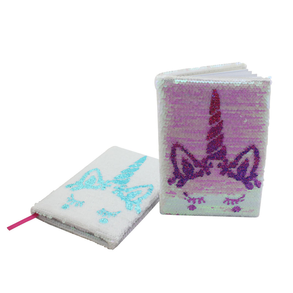 Noteer jouw aantekeningen in dit Eenhoorn Notitieboek. Het notitieboek heeft gelinieerd papier, een roze lint als bladwijzer en de omslag is voorzien van wrijfbare glitter pailletten. Kies de ene dag als omslag een roze eenhoorn en de andere dag een blauwe.