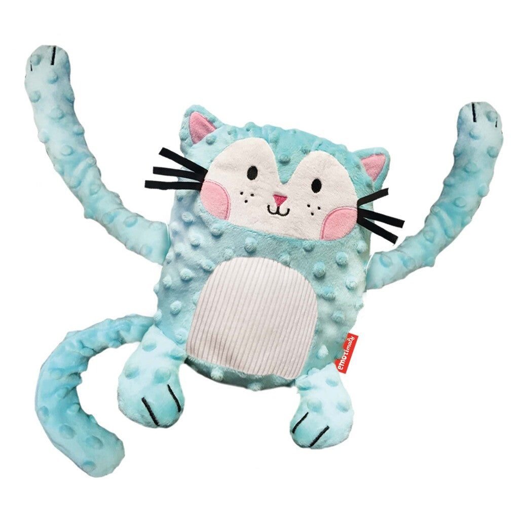 Pip is een schattige, blauwe kat die supergraag met jou wil knuffelen! Ze heeft niet alleen lange armen en een staart, maar zorgt er ook voor dat je je nooit alleen voelt! Als je voor het eerst naar de crèche, naar school of uit logeren gaat, kan dat natuurlijk een beetje spannend zijn. Maar geen paniek! In het grote hart is ruimte om drie lieve berichtjes op te nemen. Zo is mama, papa, oma of opa toch altijd dichtbij! Je kan heerlijk knuffelen met Pip dankzij de stof met verschillende texturen, en als je schudt wordt er een berichtje afgespeeld. Pip heeft een leuke, geribbelde buik die erom vraagt gekieteld te worden! Zo heb je altijd een vriendje bij je! Pip werkt op drie LR44/AG13 batterijen (niet inbegrepen). Geschikt voor kinderen vanaf12 maanden.