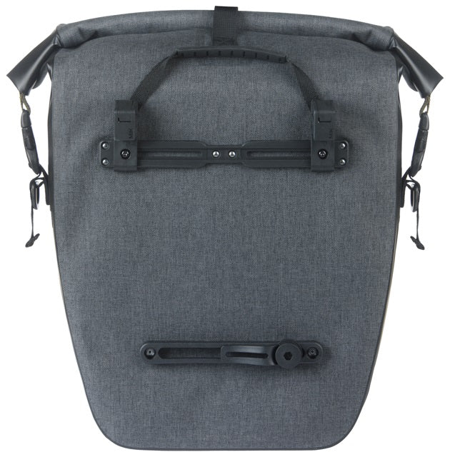 Met de Basil Navigator Storm fietstas in L-formaat kies je voor een sportieve en functionele enkele fietstas. Met deze tas ben jij klaar voor elk avontuur. 100% waterdicht De tas is uitgevoerd in een hoogwaardige waterdichte (IPX3) stof, zodat je spullen ook bij regen goed beschermd blijven. Het functionele design maakt het eenvoudig om alles mee te nemen wat je onderweg nodig hebt. Over elk detail is nagedacht om jouw spullen zo praktisch mogelijk te vervoeren. Zo is er ruimte voor bijvoorbeeld een fietshelm dankzij het verstelbare elastieken koord, en sluit je de tas moeiteloos af met een roltopsluiting, die op drie verschillende manieren bevestigd kan worden extra veilig én flexibel. Onderweg in het donker? Geen probleem! Dankzij de reflecterende Basil-logo s op drie zijden ben je ook dan goed zichtbaar. Zo ga je altijd goed voorbereid op pad. De tas bevestig je eenvoudig aan je bagagedrager met MIK Hooks. Het Hook-On systeem is netjes weggewerkt in het ontwerp, zodat je de tas zonder moeite op en van de fiets gebruikt. Met de afneembare schouderband tover je de fietstas in een handomdraai om tot een comfortabele schoudertas. Kenmerken: Inhoud: 25 31 liter Afmetingen: 15 x 27 x 41 cm Formaat: Large (L) 100% waterdicht (IPX3-geclassificeerd materiaal) Afsluitbaar met flexibele roltopsluiting (3 sluitopties) Verstelbaar elastiek aan de buitenzijde voor o.a. een helm Reflecterende Basil-logo s op 3 zijden voor extra zichtbaarheid Bevestiging met MIK Hooks op bagagedrager Netjes weggewerkt Hook-On systeem Afneembare schouderband voor gebruik als schoudertas