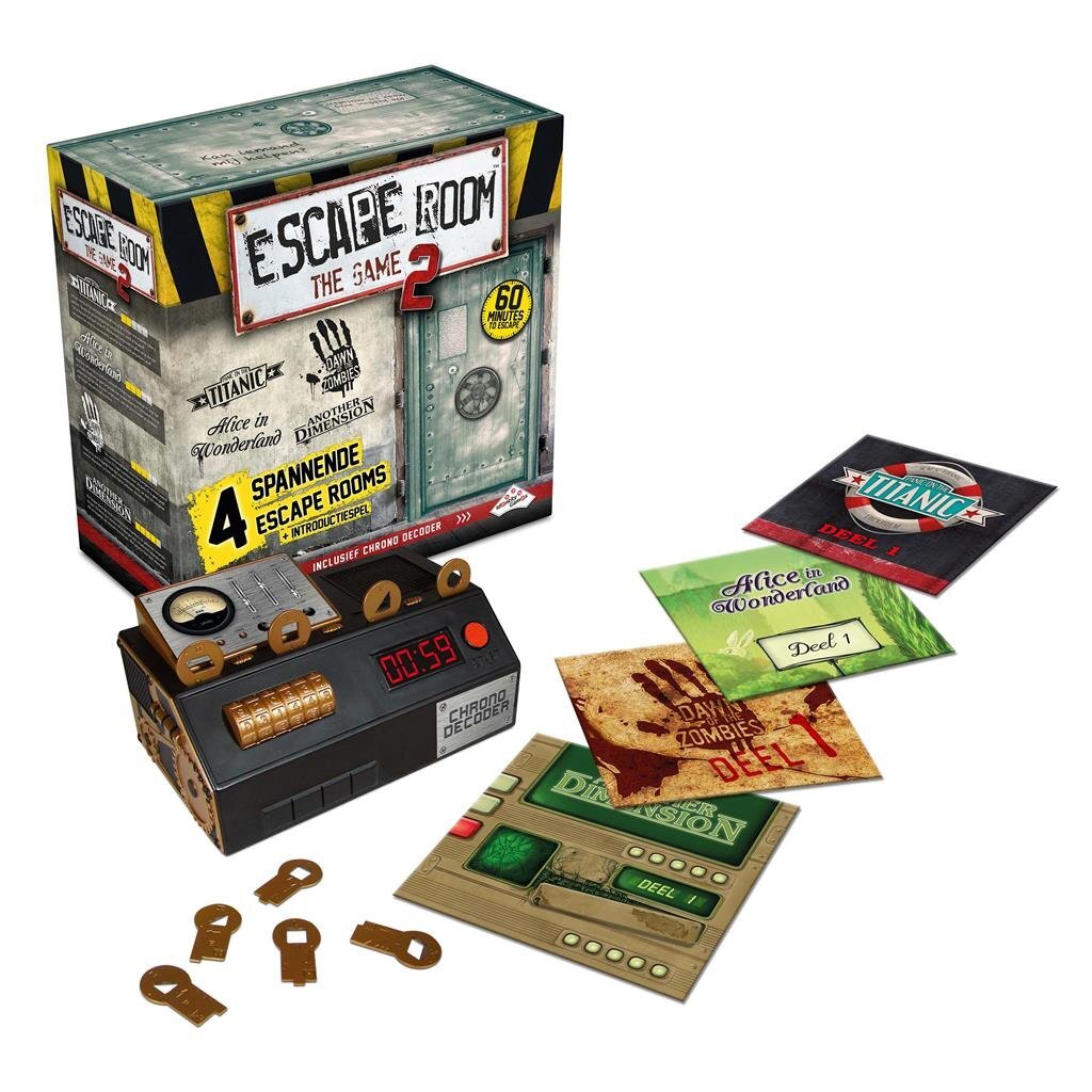 Nog geen ervaring met Escape Room The Game? Dan kun je een uitdagend en onvoorspelbaar spel verwachten! Escape Room The Game is het spel waar je bij moet samenwerken om puzzels op te lossen en verborgen aanwijzingen te vinden. Het is altijd een race tegen de klok; je hebt maar 60 minuten om te ontsnappen. De Chrono Decoder telt af, zorgt voor de juiste sfeer en geeft aan wanneer je hints mag gebruiken. In dit spel win je samen of verlies je samen. Alle spelers moeten het beste uit zichzelf halen. Om raadsels en puzzels op tijd te kunnen oplossen, is teamwork de sleutel tot succes. Onvoorstelbaar hoe snel een uur voorbijgaat in het heetst van de strijd... Ben je klaar voor deze ultieme uitdaging?