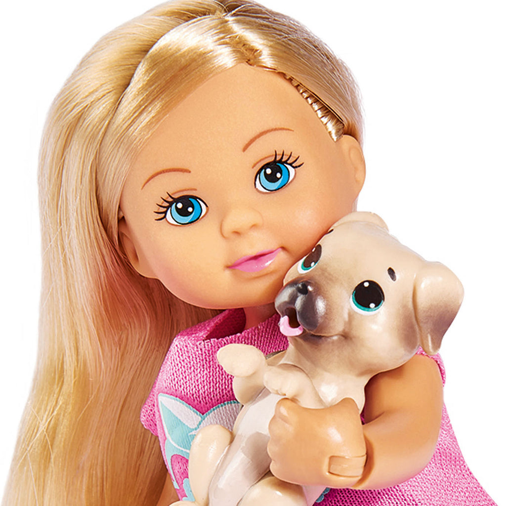 Pop Evi Love maakt op haar fiets een mooie fietstocht. In haar rugzak die ze op over haar schouders draagt zit haar hondje mee te genieten. De stoere roze helm maakt het fietstochtje helemaal compleet. Evi's hond kan ook uit de rugzak gehaald worden.