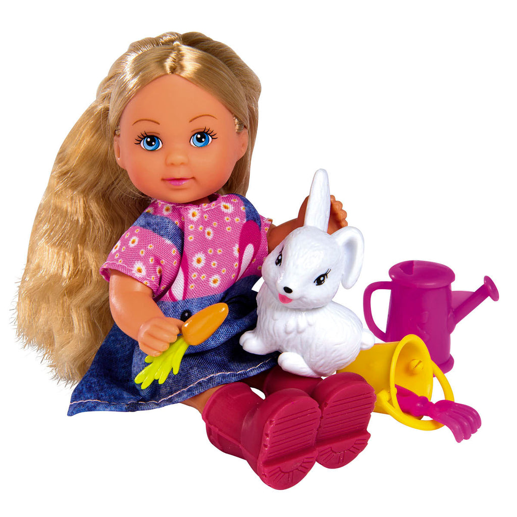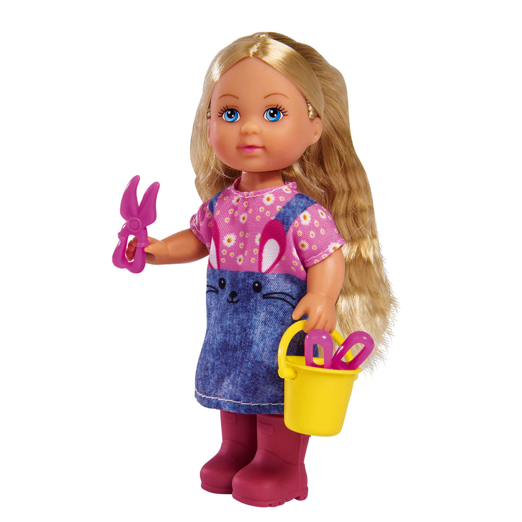 Evi houdt van tuinieren. Met haar tuingereedschap, kan zij van alles laten groeien! Schep in de aarde, hark de aarde aan en knip takjes van de planten weg met haar gereedschap. Geef de plantjes water met de gieter. Haar konijntje wil graag de worteltjes proeven!